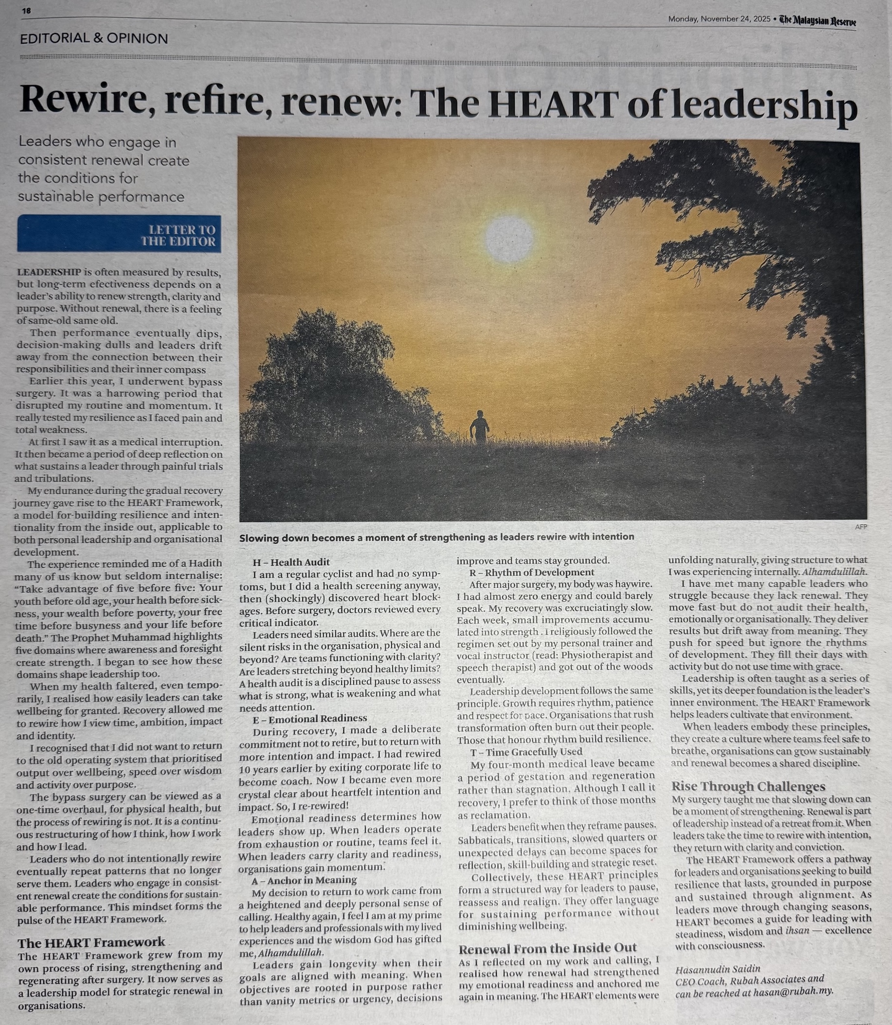 This opportunity emerged naturally and unexpectedly, through conversations and sharings over the past months, especially after my bypass surgery earlier this year. That difficult period reshaped how I viewed purpose, resilience and the inner foundations of leadership. It also deepened my intention to write regularly and offer meaningful reflections to leaders navigating today’s complexities.